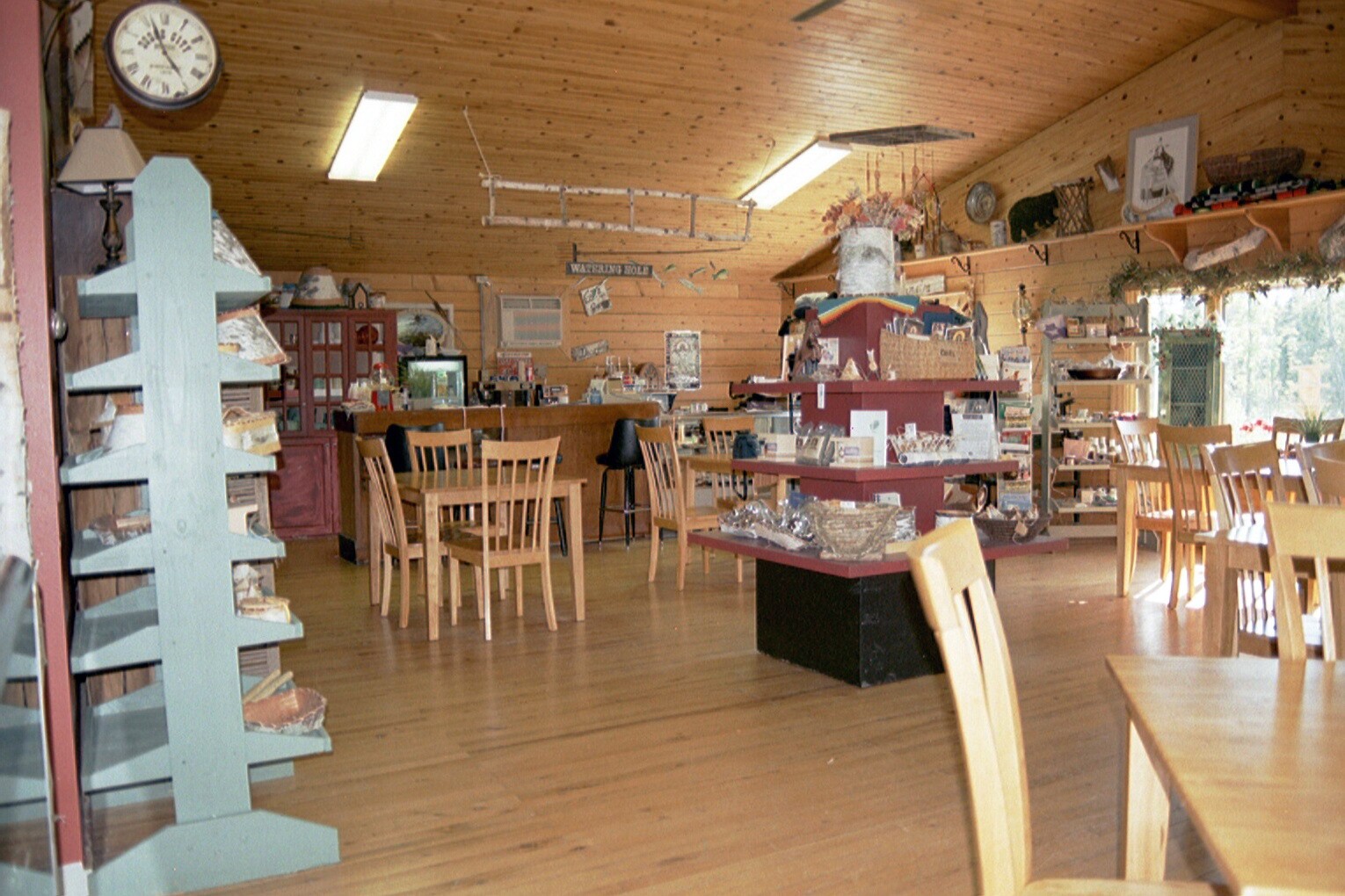 Innenansicht des Verkaufsladens von Native Harvest (Photo: AGIM, 2005) In dicht bewaldeten Gebieten ist man auch mit dem Auto schnell verloren, weil die Highways durch den Wald für uns Ortsfremde alle wie ein Ei dem anderen gleichen. Eine genaue Anschrift unseres Reiseziels haben wir nicht und so bin ich nicht wenig stolz noch im Rückspiegel ein schon leicht angewittertes Schild mit der Aufschrift „Native Harvest“ zu entdecken, das uns den Weg zu dem wohl erfolgreichsten Unternehmen des WELRP weist. Am Ende der Uferstraße eines Sees befindet sich der Gartenbaubetrieb von Native Harvest.